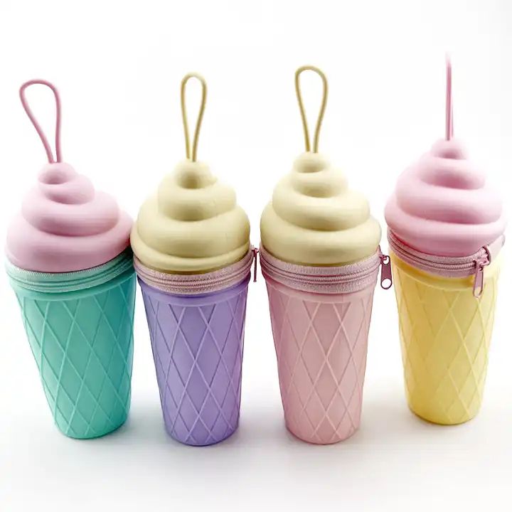 兒童和成人多可愛冰硅膠站立鉛筆收納袋